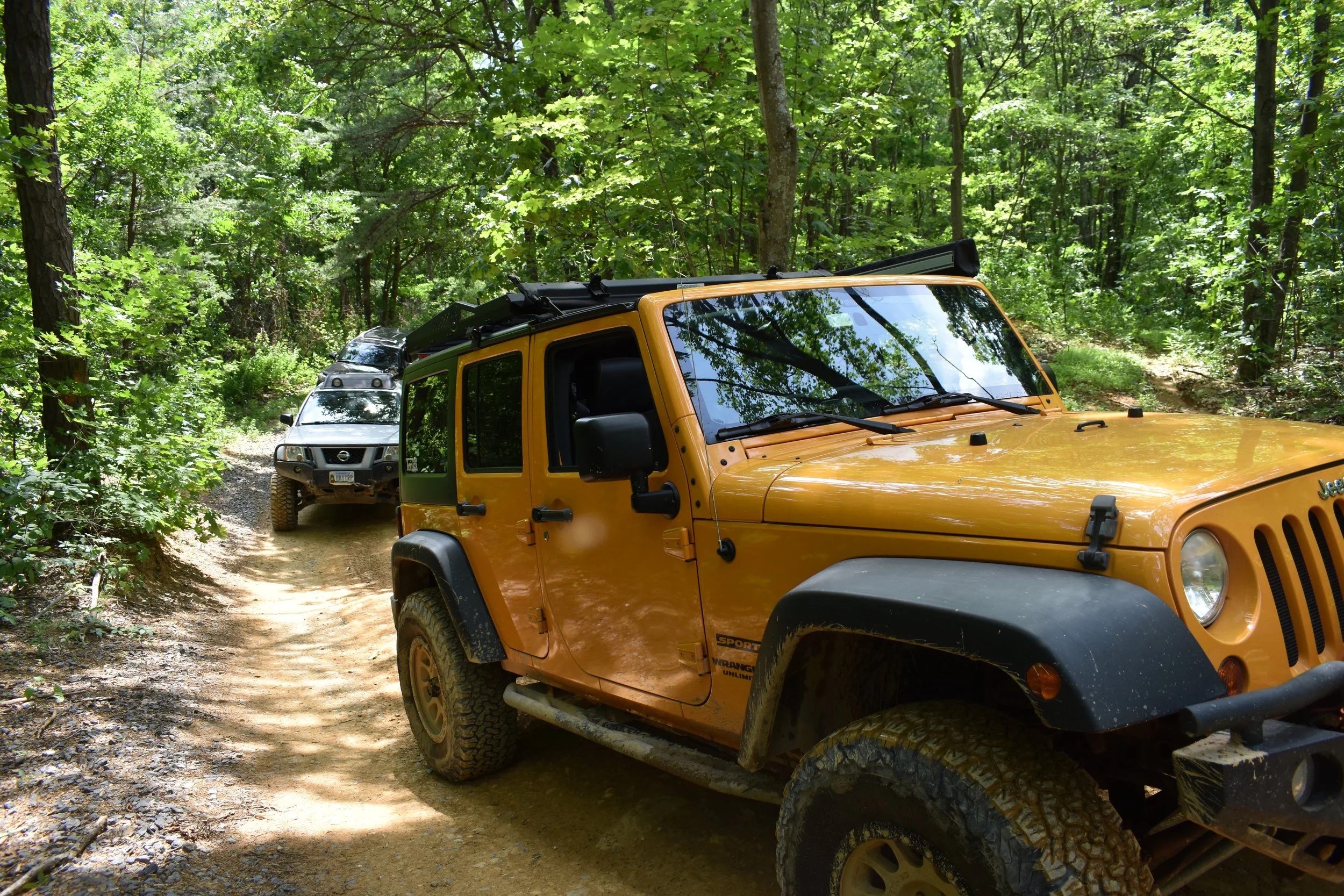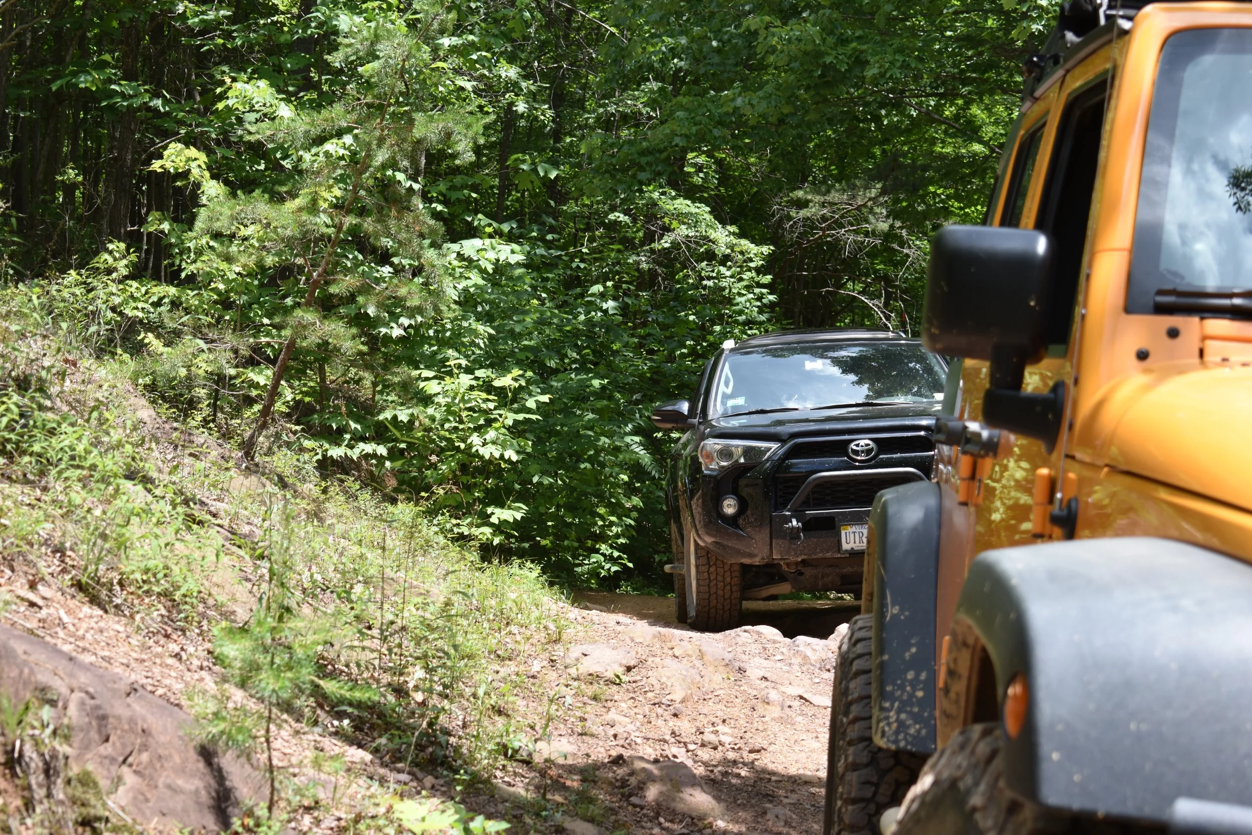 We stopped frequently for the photographer to hop out and take photos and video. After making our way to the end of the MVUM section of the trail, we took a break for lunch, which the Shenandoah County folks generously provided for us. After eating, we headed back out the way we came, and headed towards the start of Peters Mill.